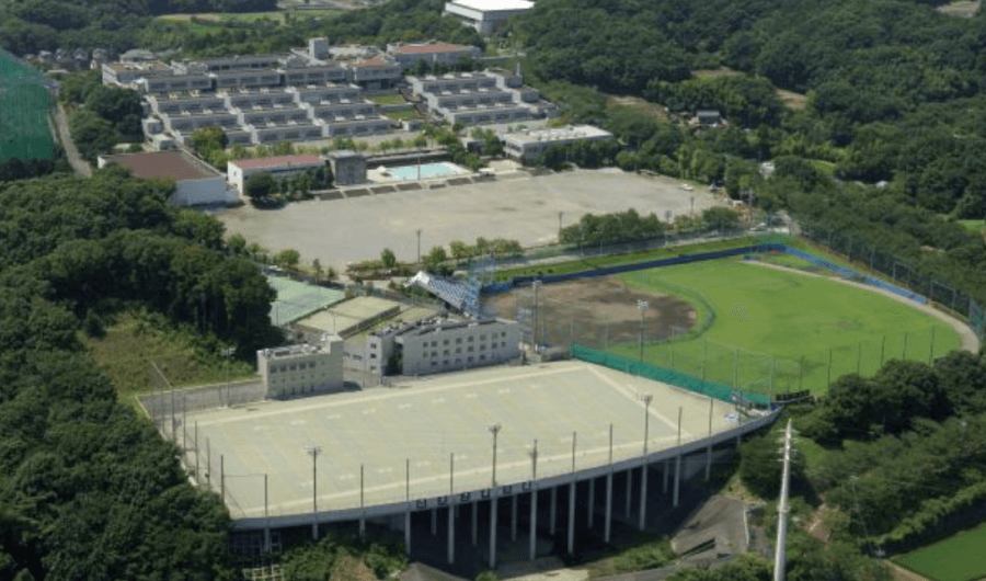 学校は町田市と八王子市との境界に位置し、 広大な敷地を 誇っています。 その敷地は多摩丘陵の緑豊かな自然に囲まれ、 四季を通じて爽やかな環境にあります。 最寄り駅は町田・淵野 辺・多摩センターと三方面より通学バスが出ています。